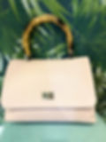 Khaki Leather Zip Top Bag with Larger Handle