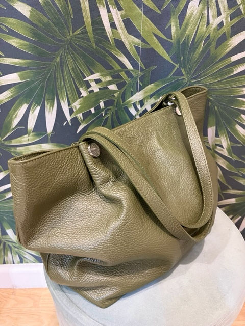 Large Olive Leather Bag with 1/2 Zip Top