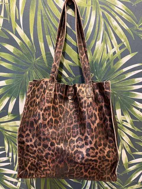 Tan Quilted Style Leather Bag with 2 Sections and Zip Inside