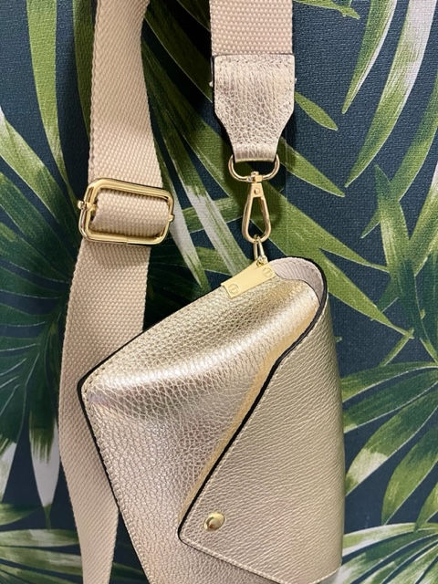Soft Gold Leather Cross Body Bag with Thick Web Strap