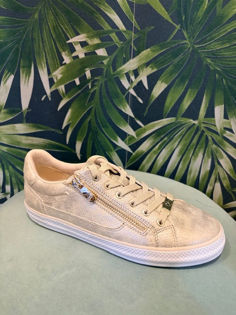 White/Beige/Gold Zip Trainer