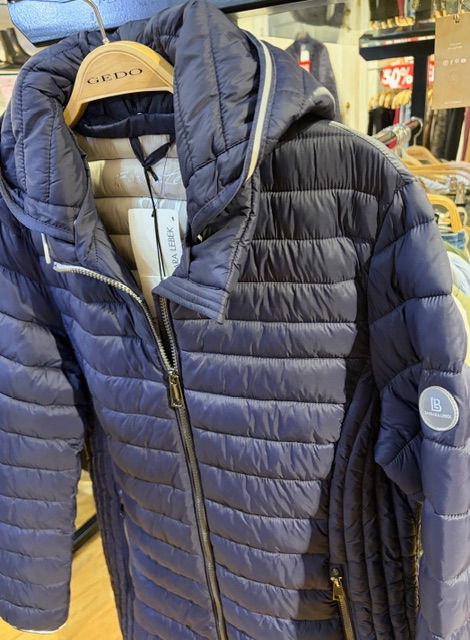 Lightweight 3/4 Length Navy Quilted Coat with Detachable Hood